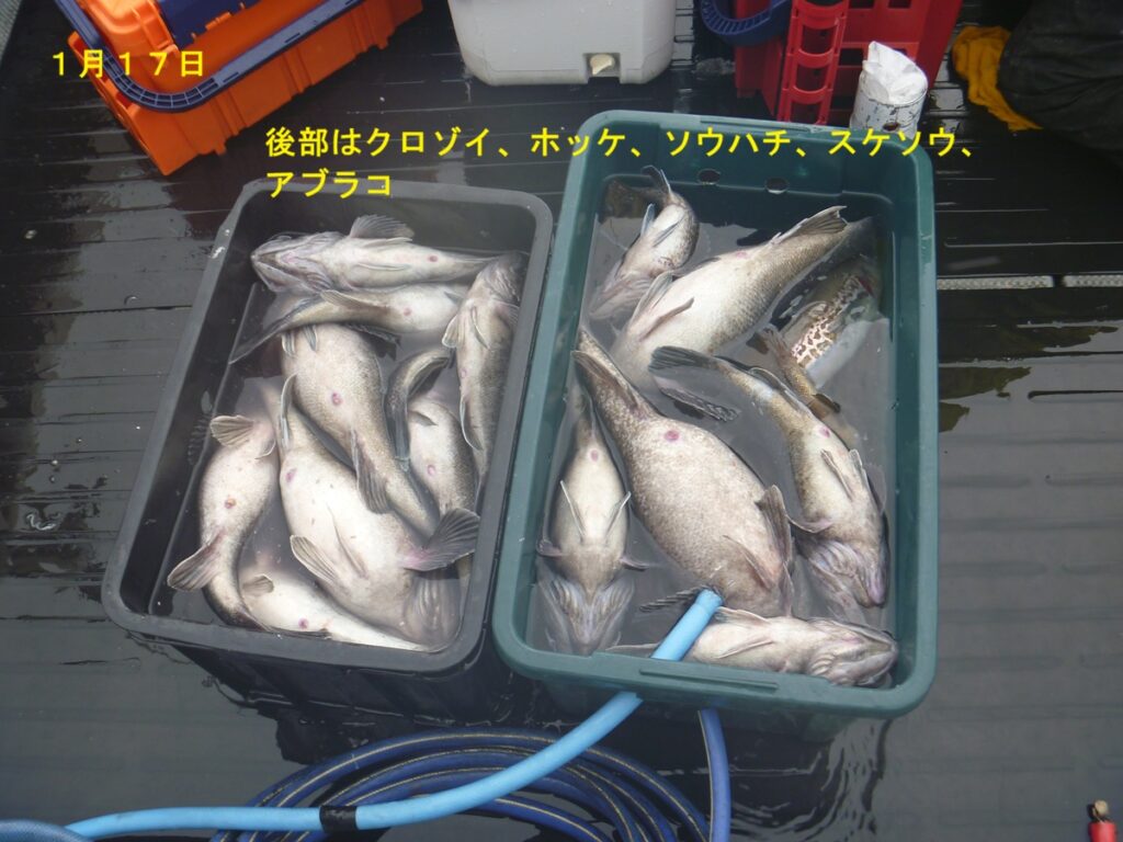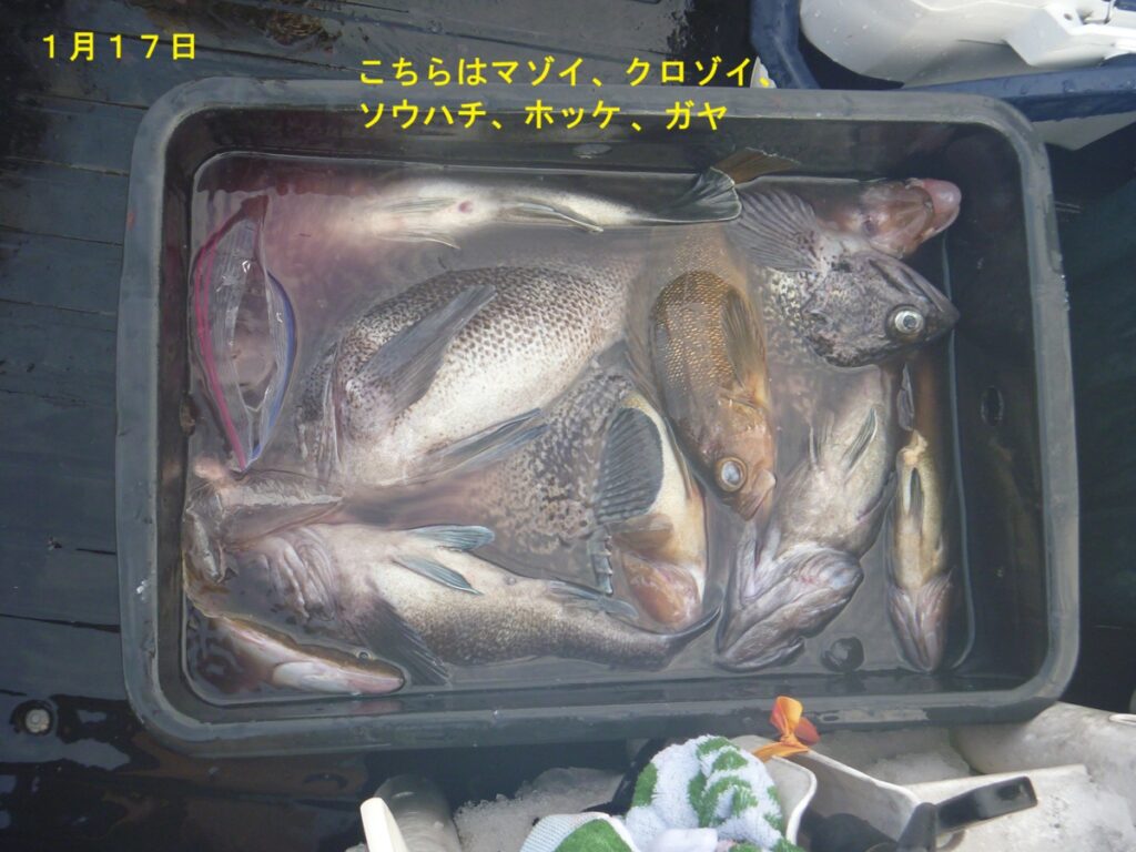 ※その他、ホッケとスケソウは最大50cm、ソウハチは最大35cm、アブラコ30cm、ケムシカジカ35cm、ガヤは20cm~28cmという状況でした。